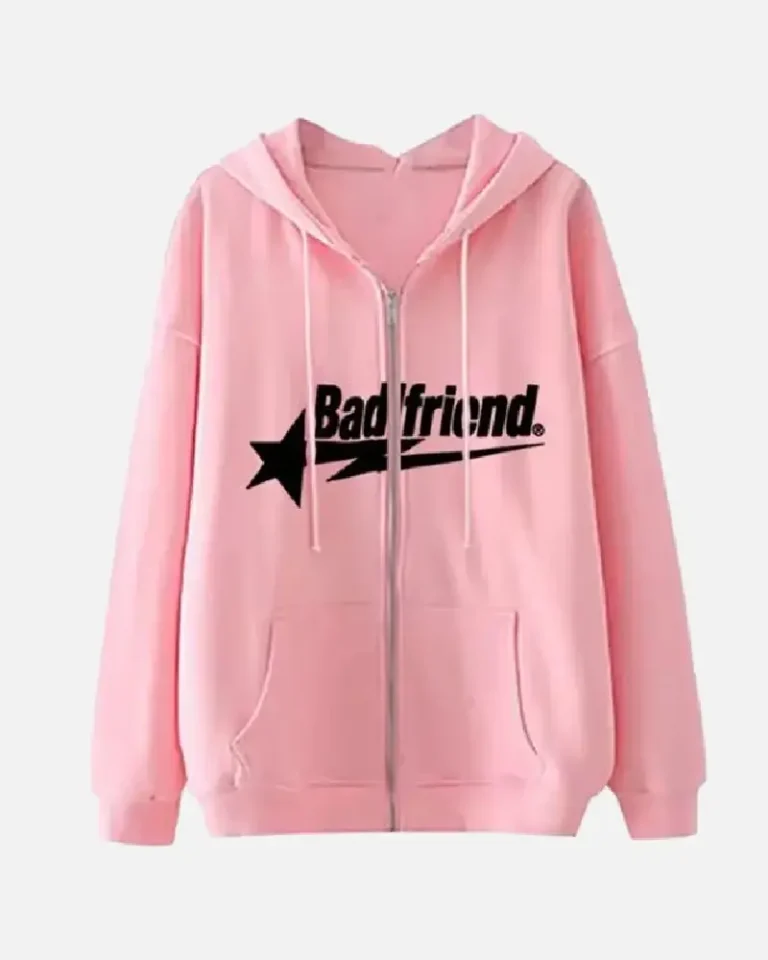 Be the first to review “Bad Friend Zip Hoodie Pink” Cancel reply